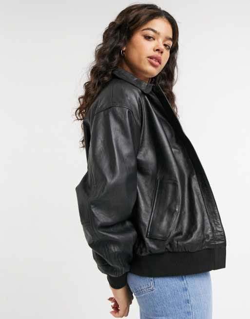 Asos Bomberjacke Aus Hochwertigem Leder Schwarz Bomber Jacket Leather Jacket Girl Jackets